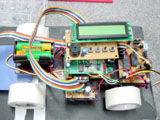 高校生の部優勝の寒河江工業高等学校 奥山さん「微妙」。後輪駆動で、ハイスピードギヤーボックスHEを使用。ギヤ比は18:1の高めを使用。電池は8本をモータへ、三端子レギュレータで降圧しCPUへ供給。昨年度に続き優勝はすごい。「昨年の全国大会では脱輪してしまったので、今回は完走して決勝トーナメントへ残りたい」と本人の弁。 |