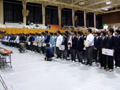 中学生の部から始まった大会は、前日の試走では完走していた車も本番では選手の緊張がマイコンカーに影響あたえたのか2回の予選では3台の完走となった。3台による決勝トーナメントで1位は福野中学校の宮本勝太郎君、2位は庄西中学校の河原貴軌君、3位も庄西中学校の細川宗一郎君となった。