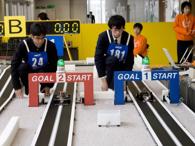 地方予選の最後を飾る「ジャパンマイコンカーラリー2008北海道地区大会」。今年も年明け間もない2008年1月12日(土)に、北海道札幌国際情報高等学校を会場に熱戦が繰り広げられた。前回大会は、レーンチェンジの導入とスタート方式の変更により、参加164台のうち完走わずか22台と、前々回の完走数73台を大きく下回った。今年参加の各校選手には、ジャパンマイコンカーラリー誕生の地という伝統を復活させるべく、これまで以上の奮起が期待された。そんな中、前日と開会式前に行われた試走で苫小牧工業高等学校と北見工業高等学校の各選手のマシンがスピーディーな動きを見せ、両校選手の走りに注目が集まった。そして、高校生の部は、まさに予想通りの展開となったのである。