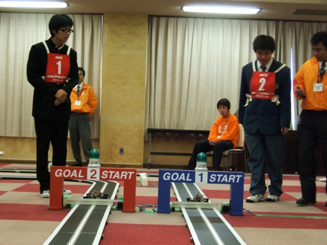 一般の部の結果は、1回目があざ〜すレーシング 今井豊さんが15.32秒で暫定1位、個人 阿佐美斉さんが0.31秒差の15.63秒で暫定2位。2回目は、先の二人は脱輪してしまったが他にこのタイムを超える選手がいなかったためそれぞれ1位、2位が確定、全国大会への代表権を獲得した。他に、チーム三光の鈴木友和さんが15.71秒で3位となったが、先の北東北地区大会で代表権を獲得していたため、4位の千葉工業大学文化会 総合工学研究会の桐林星河さんが繰り上がり、代表権を獲得した。 |