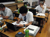 四国地区の高等学校から8校11名の先生が参加しました。自分のスキルアップになり、地区大会の励みになると好評でした。 |