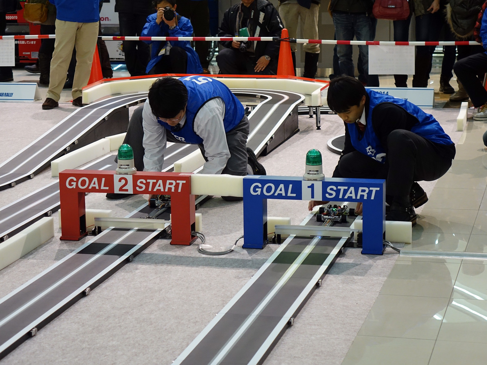 Advanced Classの1走目スタート−山口県立萩商工・惠村 智士君(左) vs 愛知県立春日井工業・山田 竜也君(右)
