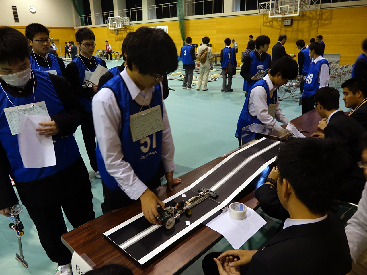 「ジャパンマイコンカーラリー2015北信越地区大会」が2014年11月1日(土)〜2日(日)、富山県立高岡工芸高等学校にて開催された。参加は、北信越の5県からAdvanced Class 153台、Basic Class 154台、合計307台34校がエントリーした。予選は、Advanced Class、Basic Class共に、2回走行しベストタイムを記録とする。その後、決勝レースとしてAdvanced Classは予選上位50台、Basic Classは上位20台で予選とは進行方向を逆にして2回走行し、ベストタイムで最終的な順位を競う。コース長は、51.35m。