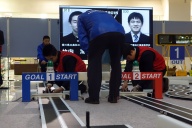 決勝トーナメント1組目は予選1位の佐藤君対4位の井下君。広い会場が緊張で空気が張りつめている中、二人は見事に完走してみせた。佐藤君が25.03秒、井下君が25.39秒という僅差だった為、観客の「わあー!」という声が響き渡る。この手に汗を握る感覚は、さすが決勝トーナメントである。一人目の決勝進出者はまず佐藤君に決定。2組目は予選2位の光宗君と3位の竹内君。各難所を確実にクリアしていき光宗君が24.74秒でゴール、決勝への切符を手にした。力強くガッツポーズが輝いていた。一方の竹内君はレーンチェンジでコースアウトし3位決定戦へと進むことになった。