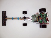 一枚のシャーシーにマイコンやモータドライブ基板などを配置することで、組み立てやメンテナンスが容易になり軽量化にもなっている。電池を出来るだけ後に搭載することでフロントの加重を減らし、ハンドルの切れを良くした。 |