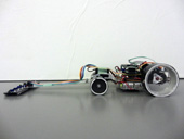 私の製作したマイコンカーは、軽さを重視し、後輪駆動に負けないようなスピードを出せるようにしました。大会前日の試走では思ったように走らず、本番前での調整となりました。結果としては、これ以上ない成績を残すことができました。これも1から教えてくださった先生や一緒に製作や調整をし、応援してくれた課題研究の仲間のおかげです。ありがとうございました。 |